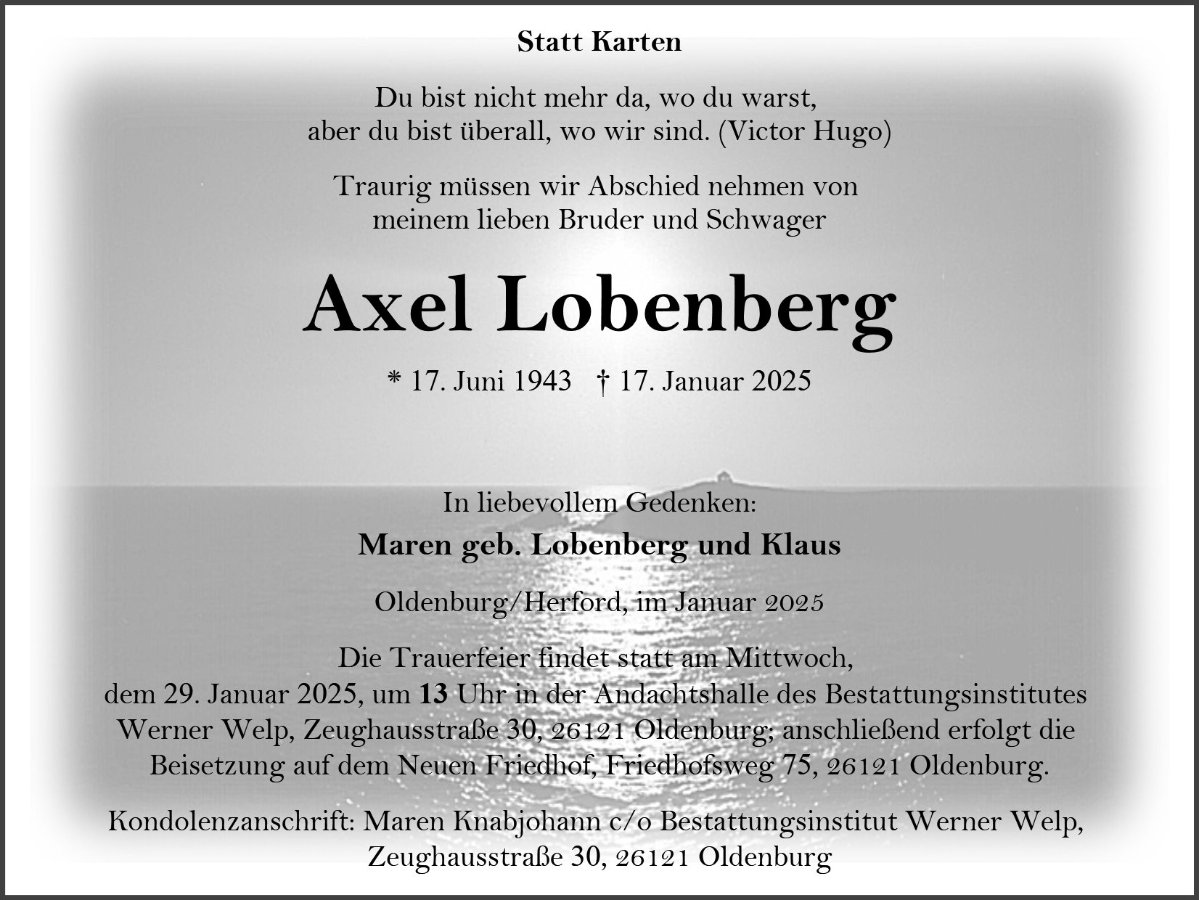 geboren am 17. Juni 1943 in Oldenburg gestorben am 17. Januar 2025 in Oldenburg