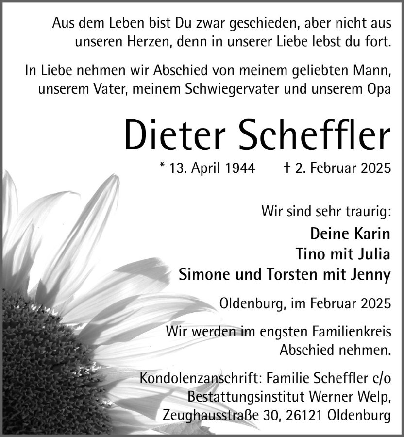 unser aufrichtiges Mitgefühl zum Tod von Dieter und ganz viel Kraft und