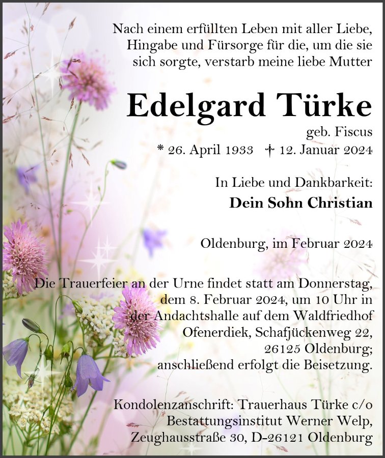 geboren am 26. April 1933 in Hökendorf gestorben am 12. Januar 2024 in Oldenburg