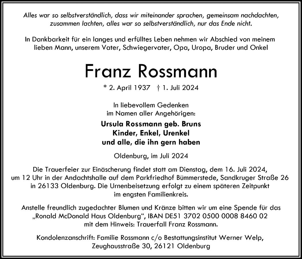 geboren am 2. April 1937 in Streekermoor, Landkreis Oldenburg gestorben am 1. Juli 2024 in Oldenburg