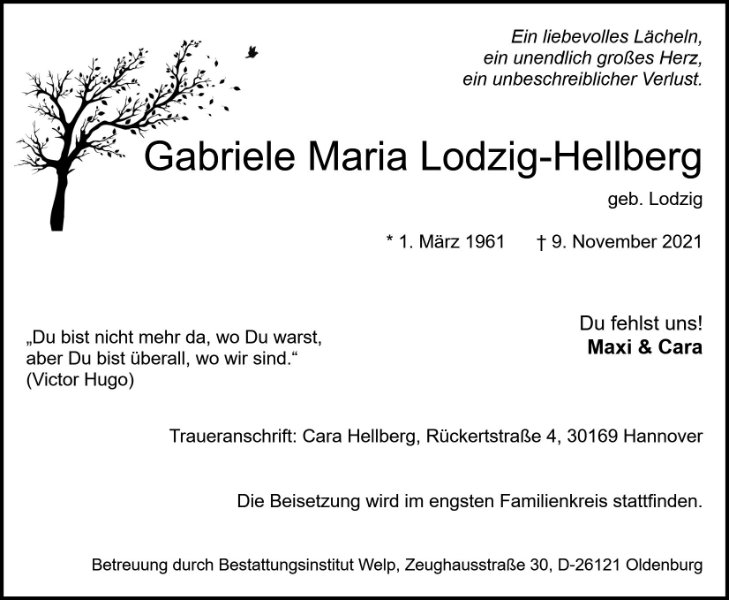 geboren am 1. März 1961 in Peine gestorben am 9. November 2021 in Oldenburg