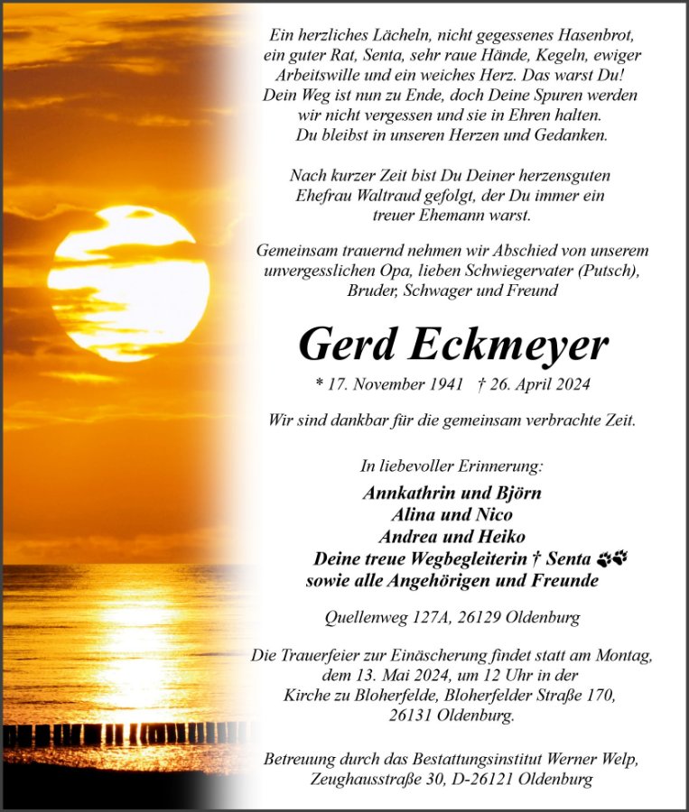 geboren am 17. November 1941 in Oldenburg gestorben am 26. April 2024 in Delmenhorst