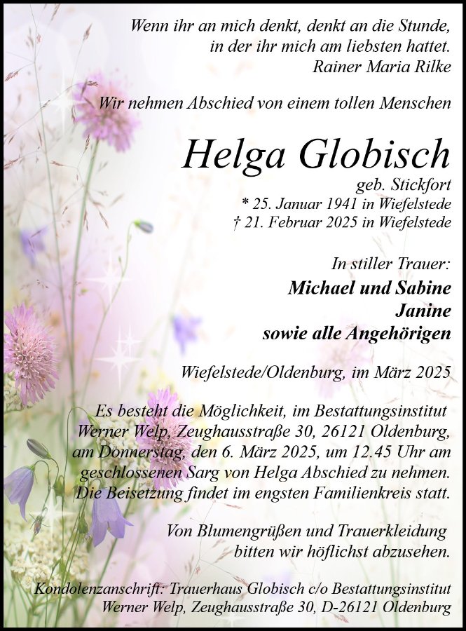 geboren am 25. Januar 1941 in Wiefelstede gestorben am 21. Februar 2025 in Wiefelstede
