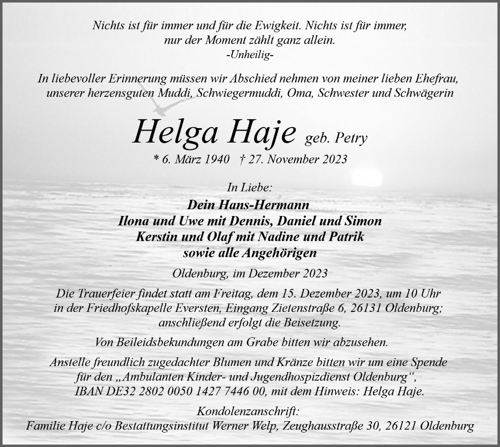 geboren am 6. März 1940 in Stettin gestorben am 27. November 2023 in Oldenburg