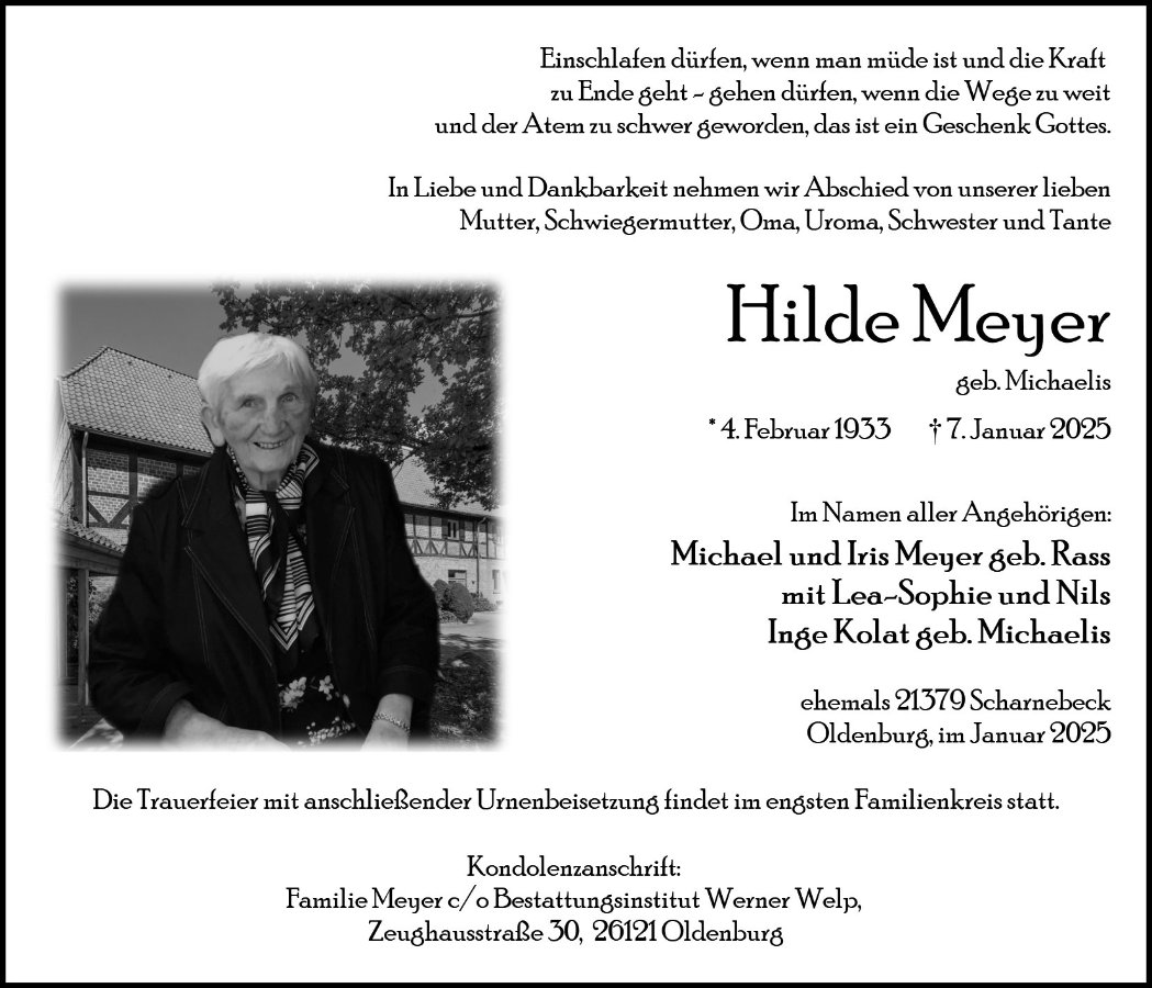 geboren am 4. Februar 1933 in Barskamp gestorben am 7. Januar 2025 in Oldenburg