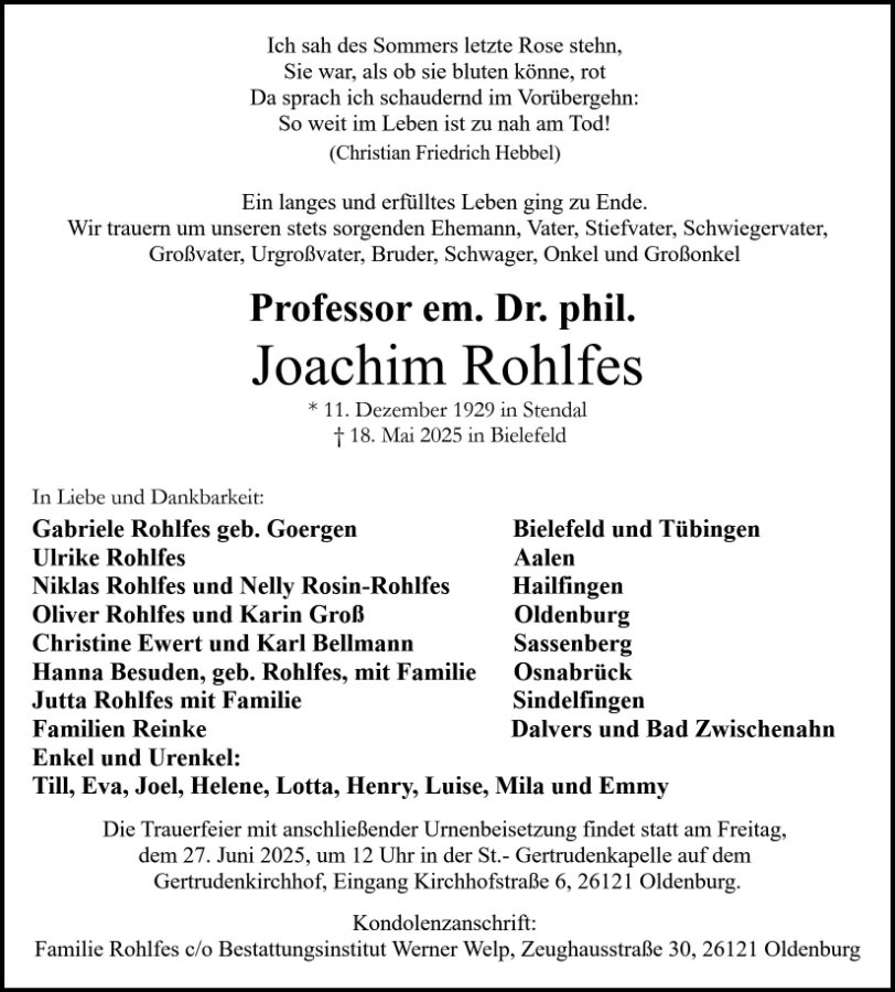 wir wünschen Ihnen für die kommende Zeit viel Kraft und dass es Ihnen gelingt, dankbar auf die positiven Erinnerungen zurückzublicken. Diese Gedenkseite möge Ihnen dabei helfen, Ihre Trauer zu teilen und das Andenken gemeinsam wachzuhalten.