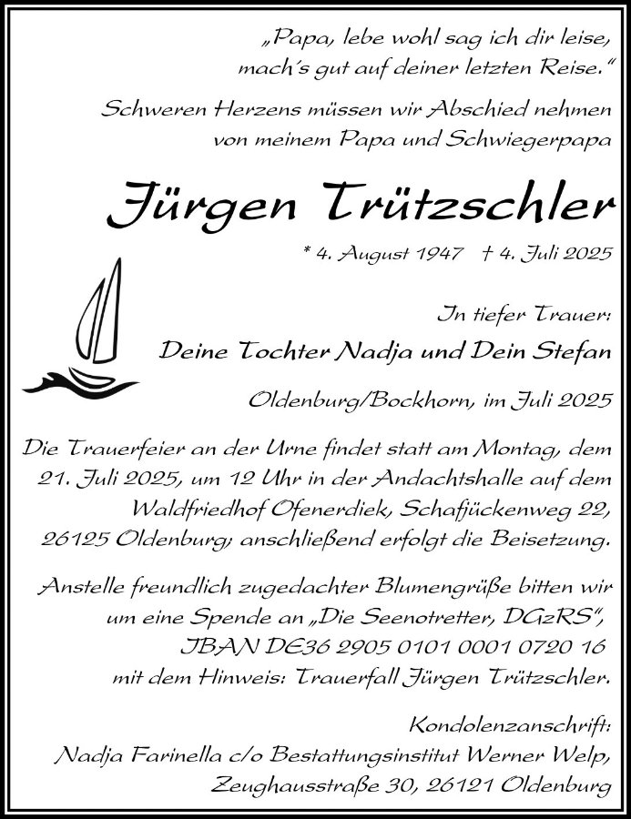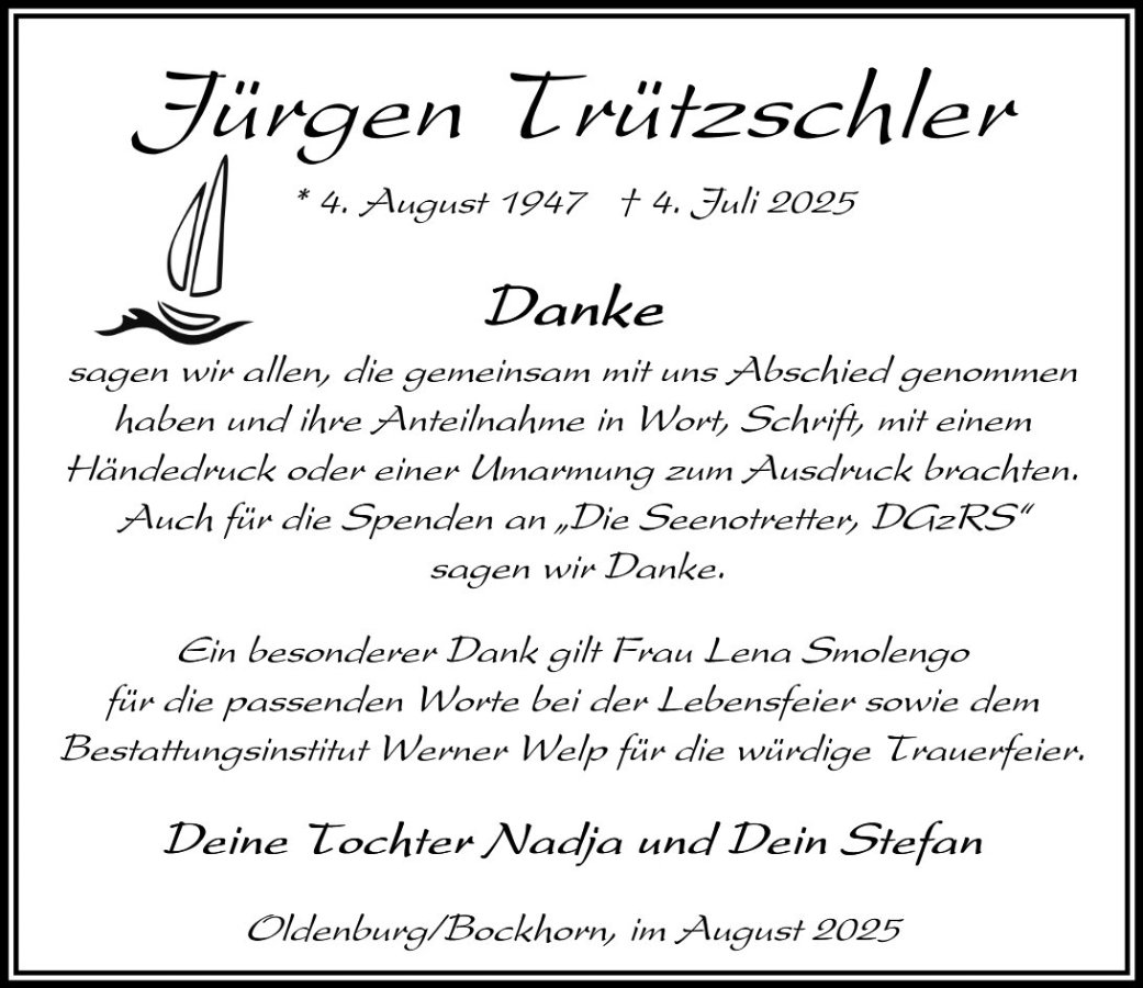 in diesen Tagen fühlen wir mit Ihnen und wünschen Ihnen von Herzen, dass Sie aus den glücklichen Erinnerungen Kraft schöpfen, um positiv in die Zukunft zu gehen. Diese Gedenkseite möge Ihnen dabei helfen, Ihre Trauer zu teilen und das Andenken gemeinsam wachzuhalten.
