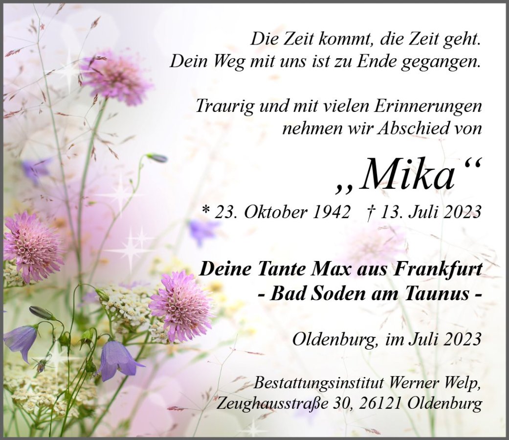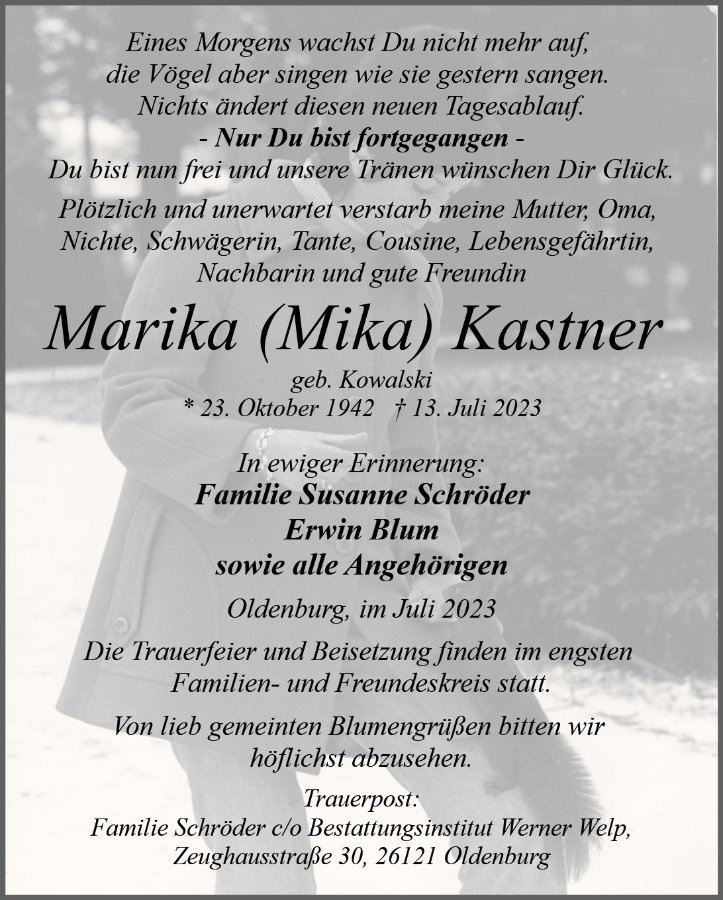 geboren am 23. Oktober 1942 in Marienburg gestorben am 13. Juli 2023 in Oldenburg