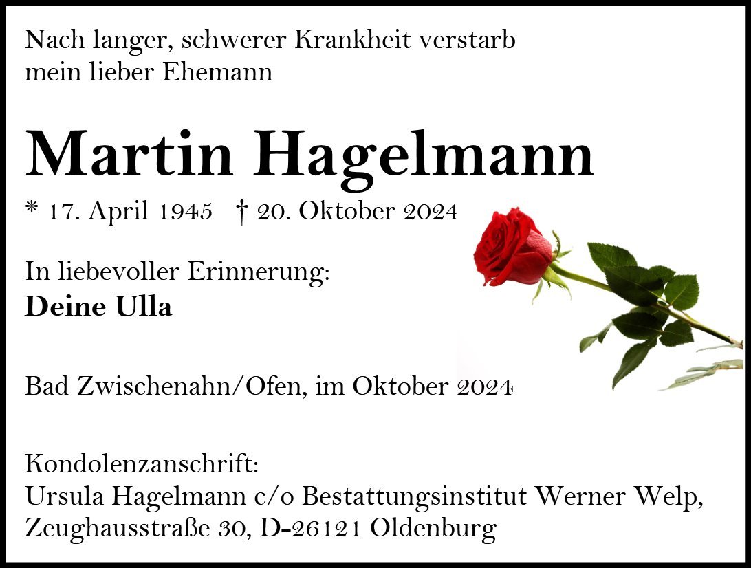 geboren am 17. April 1945 in Oldenburg gestorben am 20. Oktober 2024 in Oldenburg