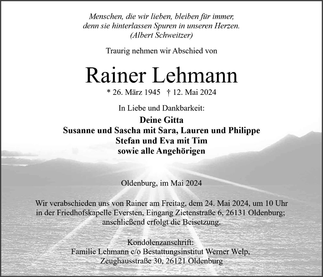 geboren am 26. März 1945 in Hagen, jetzt Neustadt am Rübenberge gestorben am 12. Mai 2024 in Oldenburg