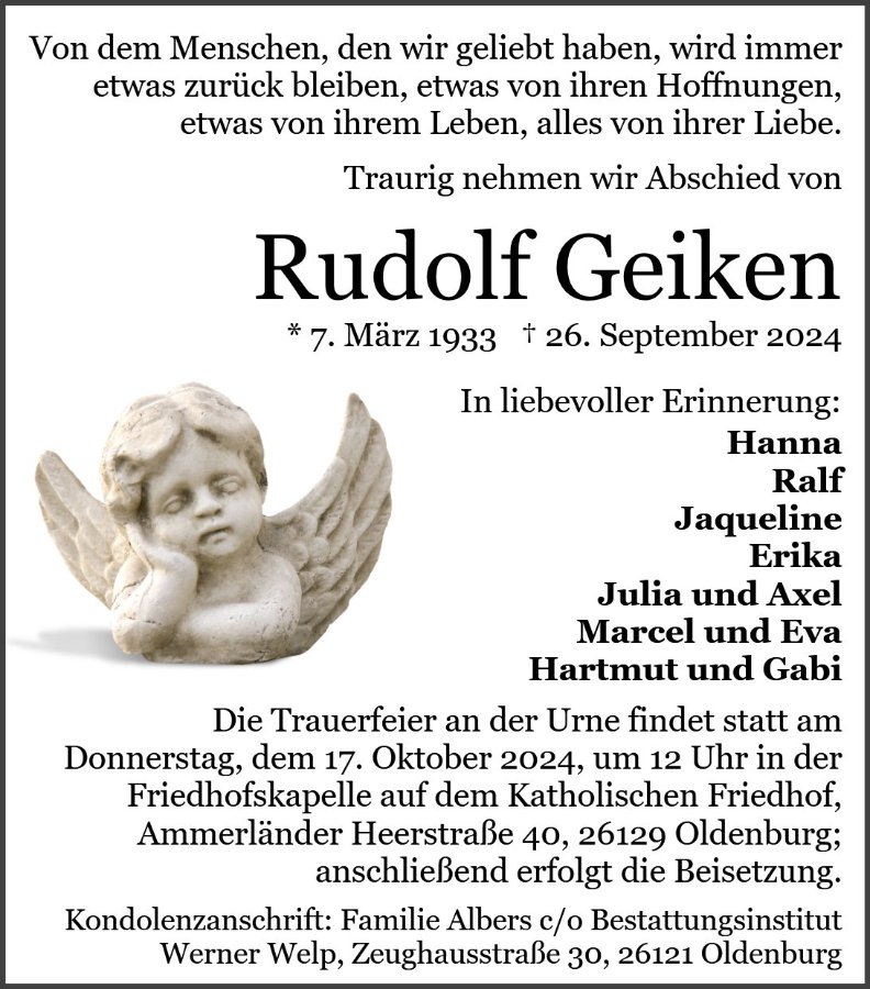 geboren am 7. März 1933 in Oldenburg gestorben am 26. September 2024 in Oldenburg