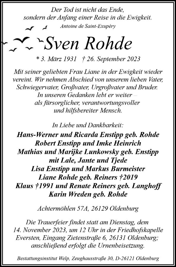 geboren am 3. März 1931 in Riga gestorben am 26. September 2023 in Oldenburg