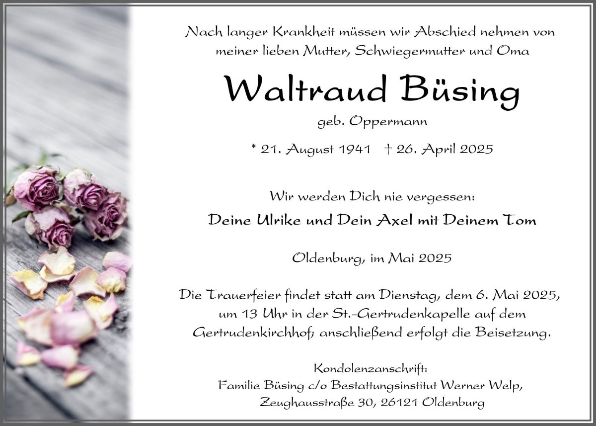 in dieser Zeit des Schmerzes wünschen wir Ihnen Kraft, den Verlust im Kreise Ihrer Liebsten zu verarbeiten. Als Zeichen unserer Anteilnahme und des Gedenkens entzünden wir dieses erste Licht. Möge diese Gedenkseite Ihnen helfen, Erinnerungen zu teilen und so das Andenken gemeinsam wachzuhalten.