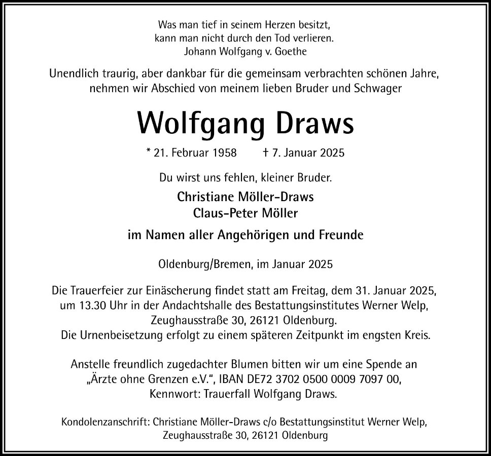 geboren am 21. Februar 1958 in Brake gestorben am 7. Januar 2025 in Oldenburg